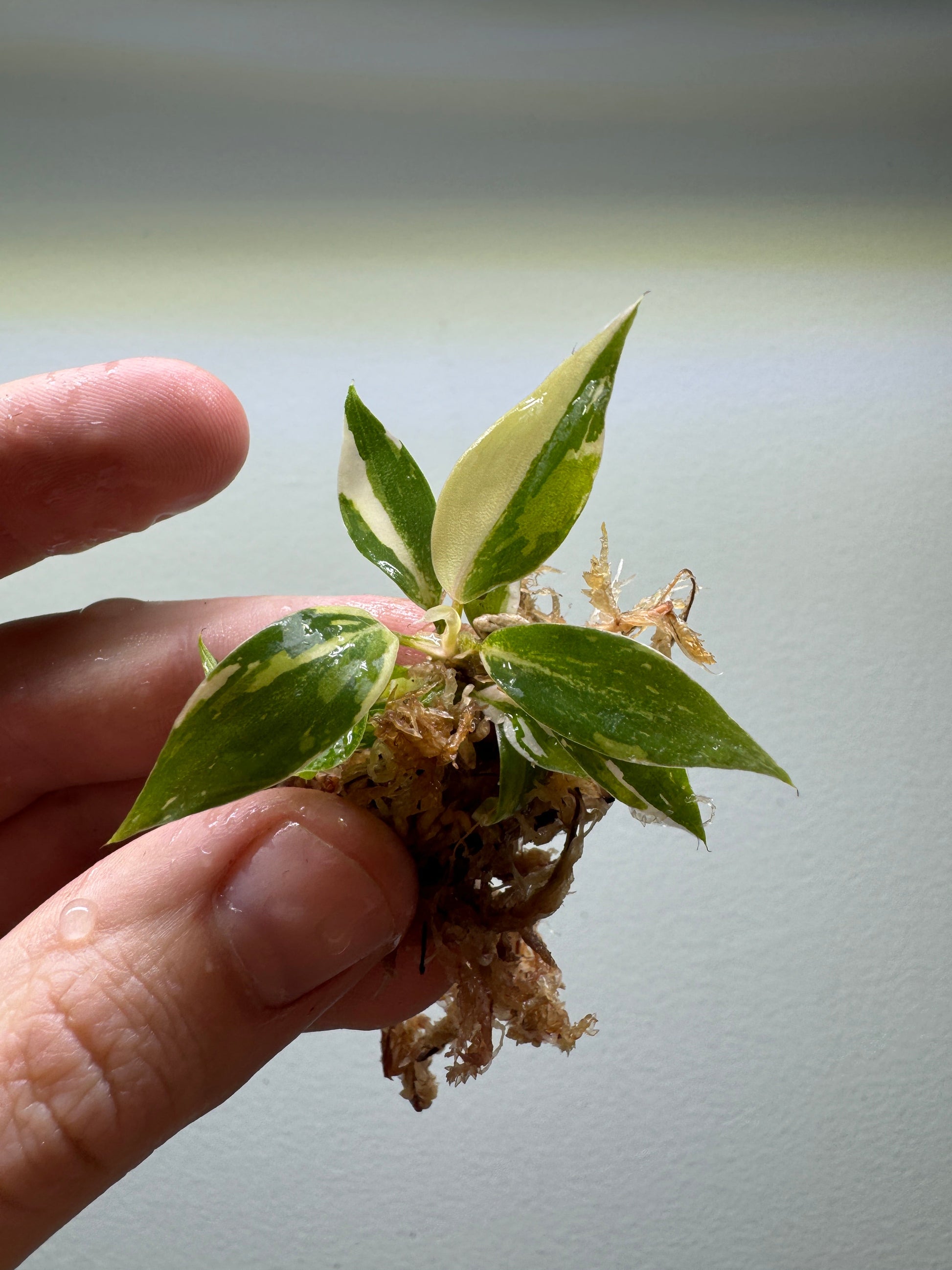 Up for grabs: One (1) baby Philodendron gloriosum Tricolor , a highly desirable variegated Philodendron featuring bold heart-shaped velvet leaves with tricolor variegation in creamy white, soft pink, and light green tones. This rare plant is a showstopper, combining the iconic creeping habit of gloriosum with stunning, unpredictable multicolored variegation. A must-have exotic plant for serious collectors.